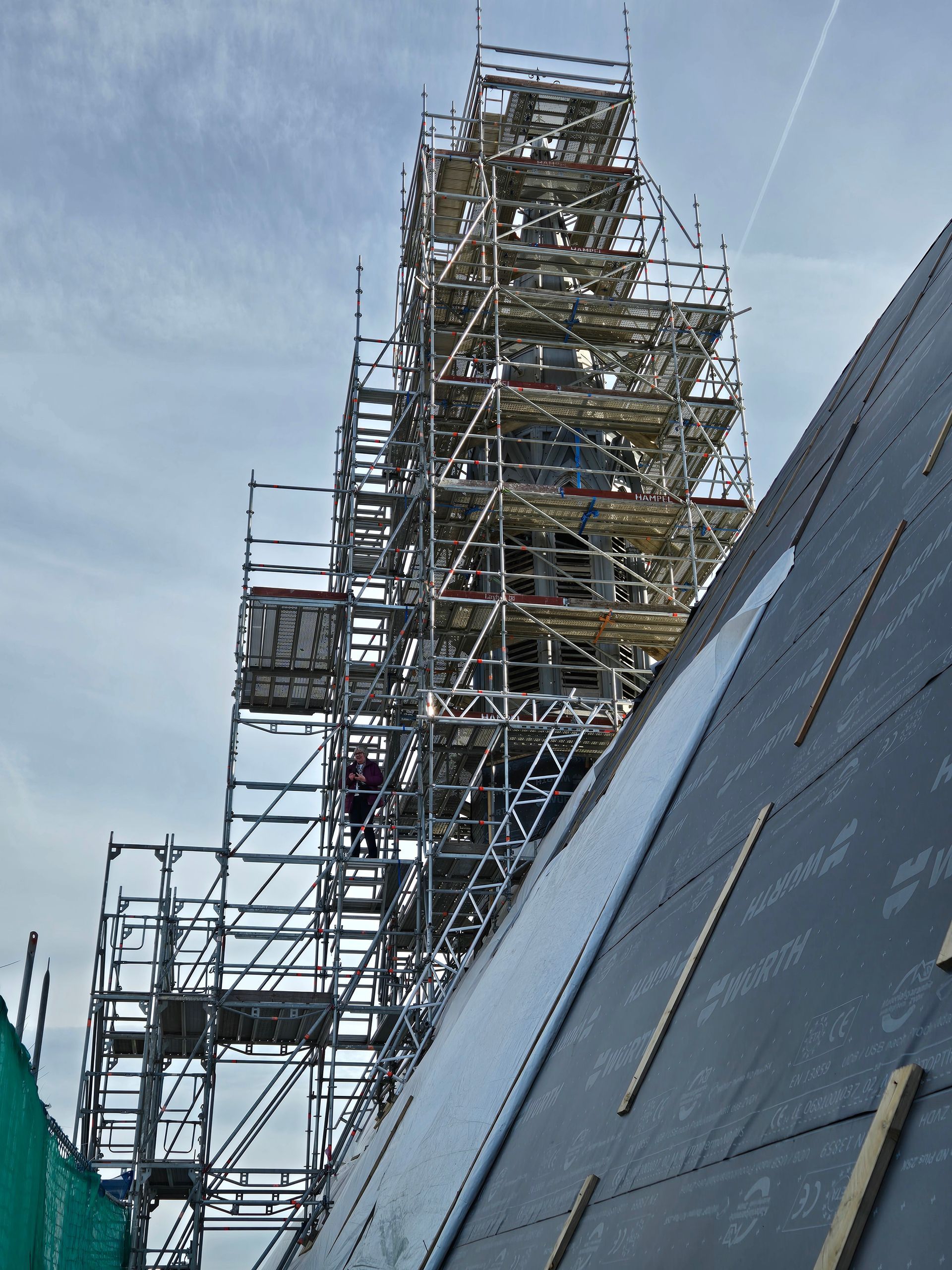 Wie gesagt, wir wissen nicht, wie groß der Umfang der Arbeiten am Glockenturm sein wird und was uns noch auf dem Dach des ehemaligen Klostergebäudes erwartet. Soweit es uns möglich war, haben wir natürlich die Arbeiten im Vorfeld geplant. Es hängt aber auch von der Witterung ab, das weiß jeder, der schon einmal Bauarbeiten an einem Dach beauftragt hat. Ein schneereicher Winter schafft andere Bedingungen als mildes Winterwetter. Wir haben aber das große Glück, dass wir bei diesem Bauprojekt mit ausgewiesenen Fachleuten zusammenarbeiten, sowohl was die Holzarbeiten am Dachstuhl als auch die Schieferarbeiten auf dem Dach betrifft. Insofern sind wir zuversichtlich, den Zeitplan einhalten zu können. Wir wollen auch zügig mit den ersten Fassadenarbeiten beginnen, um die vorhandenen Gerüste zu nutzen. Das spart der Kirchengemeinde wiederum Geld ein.